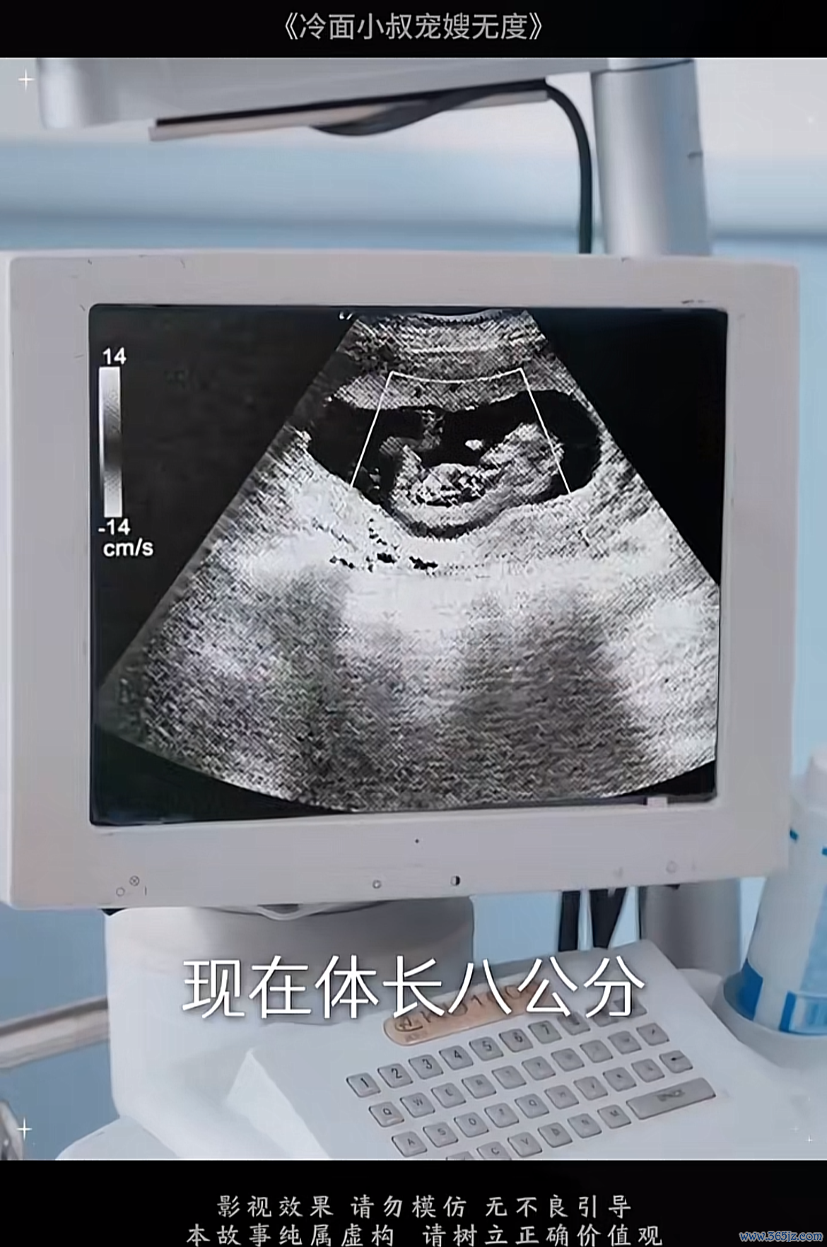 女主去病院产检时,大夫一边看B超一边告诉女主和她的小叔子:目前体长八公分,胎心152。