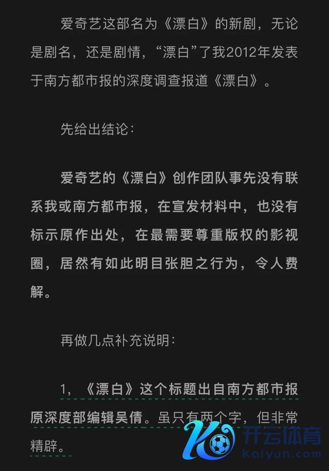 《漂白》电视剧播出后,王猛发现《漂白》演义与我方创作的《漂白》报谈不管是剧情还是剧名齐有多处一样的所在,天然新闻事实不受保护,那么深度报谈的著述权又当怎么界定呢?