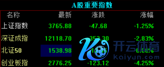 9月4日九游体育app官网,三大股指集体收跌,上证指数报收3765.88点,跌1.25%;深成指报收12118.7点,跌2.83%;创业板指报收2776.25点,跌4.25%;科创50指数跌超6%。沪深两市全天成交额2.54万亿,全市集近3000只个股下落,超2200只个股上升。