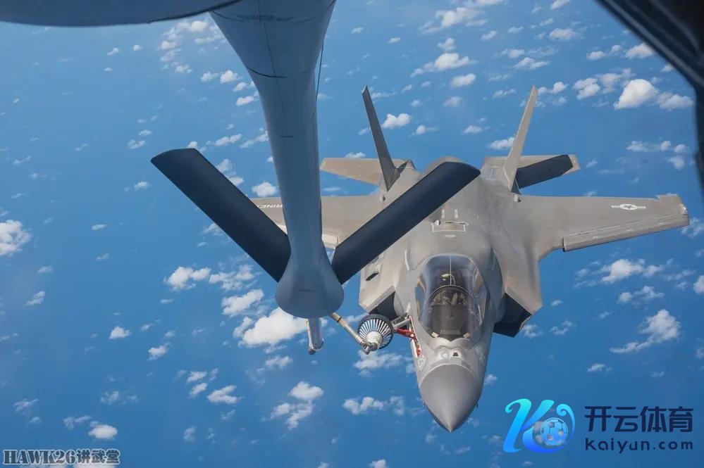 好意思国舟师陆战队第242斗争报复中队(VMFA-242)的一架F-35B“闪电II”垂直短距起降斗争机,正在太平洋上空与好意思国空军第909空中加油中队的KC-135进行空中加油。KC-135在硬式加油杆上加装软管系统,才能为该机进行空中加油,这么的改装必须在大地进行。